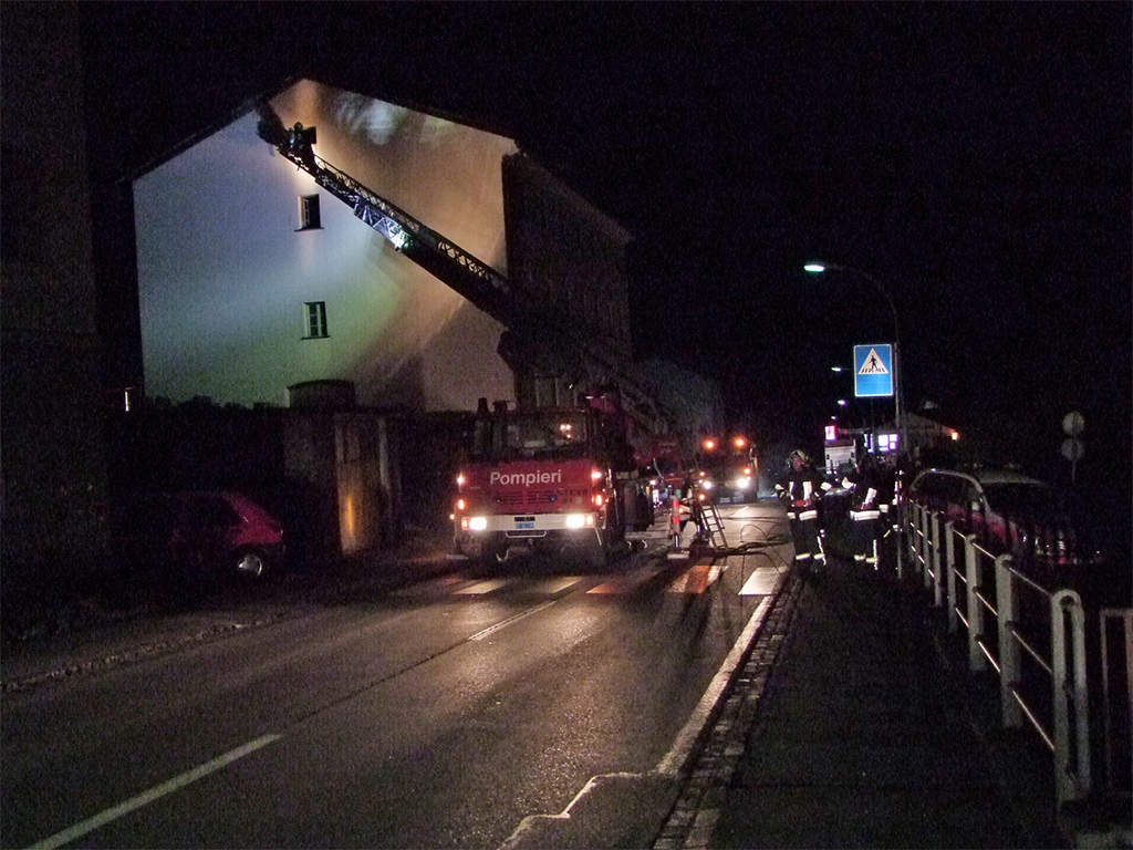 Poco dopo mezzanotte, il proprietario dell’immobile ha sentito dei rumori insoliti. Aprendo la porta d’entrata del suo appartamento ha notato che il vano delle scale era invaso dalle fiamme. Passando per una finestra dell’appartamento si calava su una terrazza mettendo in salvo la moglie e i propri figli. La seconda famiglia, che abitava al terzo piano, è riuscita a mettersi autonomamente in salvo. Sul posto sono prontamente intervenuti una ventina di militi del Corpo Pompieri di Poschiavo, che domavano le fiamme. Una donna è stata trasportata in ambulanza presso l’Ospedale San Sisto a Poschiavo per un controllo. Sul posto vi era pure il medico di picchetto. I danni causati dal fuoco, fumo e fuliggine sono notevoli sia negli appartamenti sia nel solaio. Al momento non sono note le cause che hanno generato l’incendio. Le indagini sono al vaglio della Polizia Cantonale.