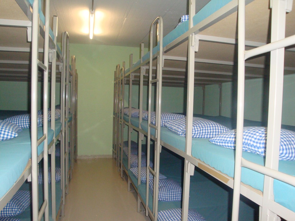 Dormitorio nel rifugio della protezione civile della piscina coperta a Poschiavo