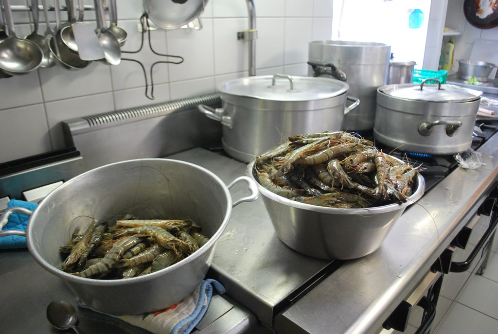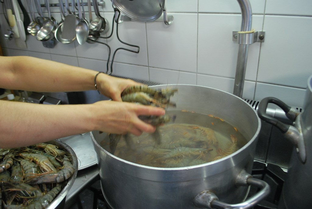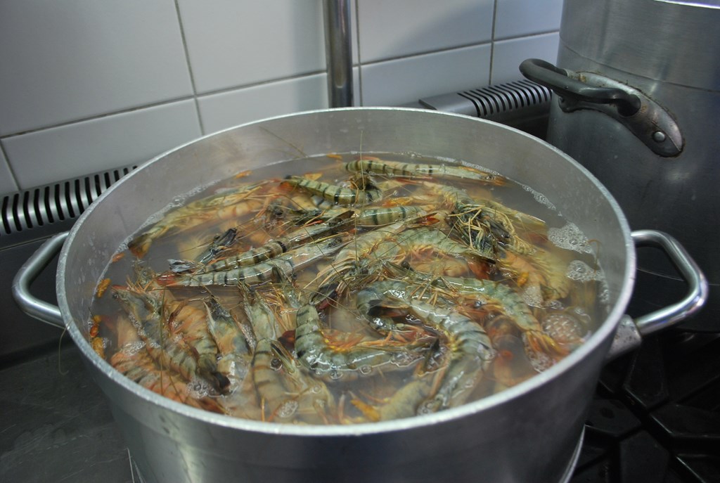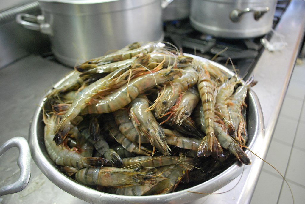 I gamberoni pepe e limone sono pronti per essere serviti.