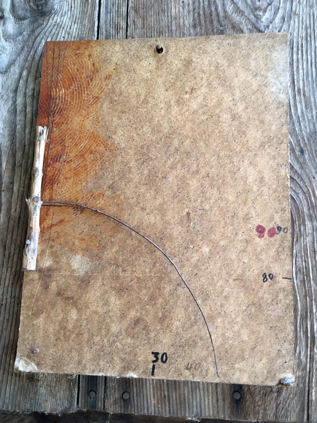 Domani sabato 13 agosto 2016 bel tempo. Il rametto di abete si è diretto verso i 30 gradi come si vede dalla foto sottostante scattata oggi, sabato 12 agosto 2016 alle ore 18:00.