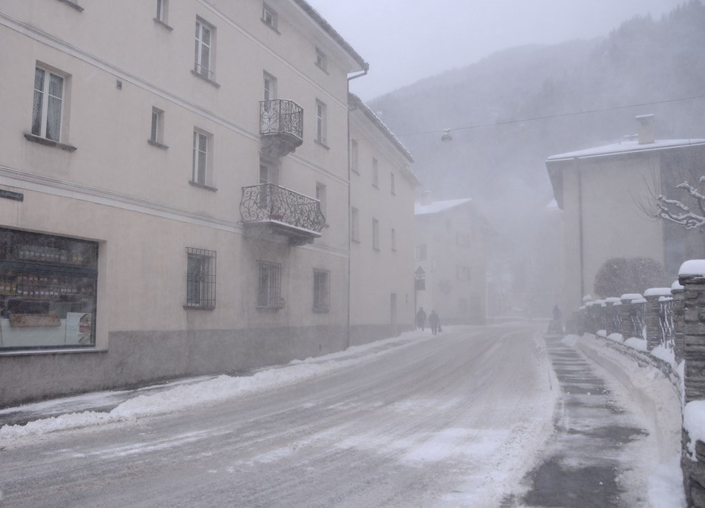Oggi le precipitazioni a carattere nevoso sono scese sulla Valposchiavo e hanno imbiancato non solo le cime ma anche il fondovalle. I mezzi sgombraneve si sono messi subito all'azione e sono tuttora in funzione per garantire una migliore percorribilità stradale. Attualmente le precipitazioni sono terminate ma imperversa un vento forte.