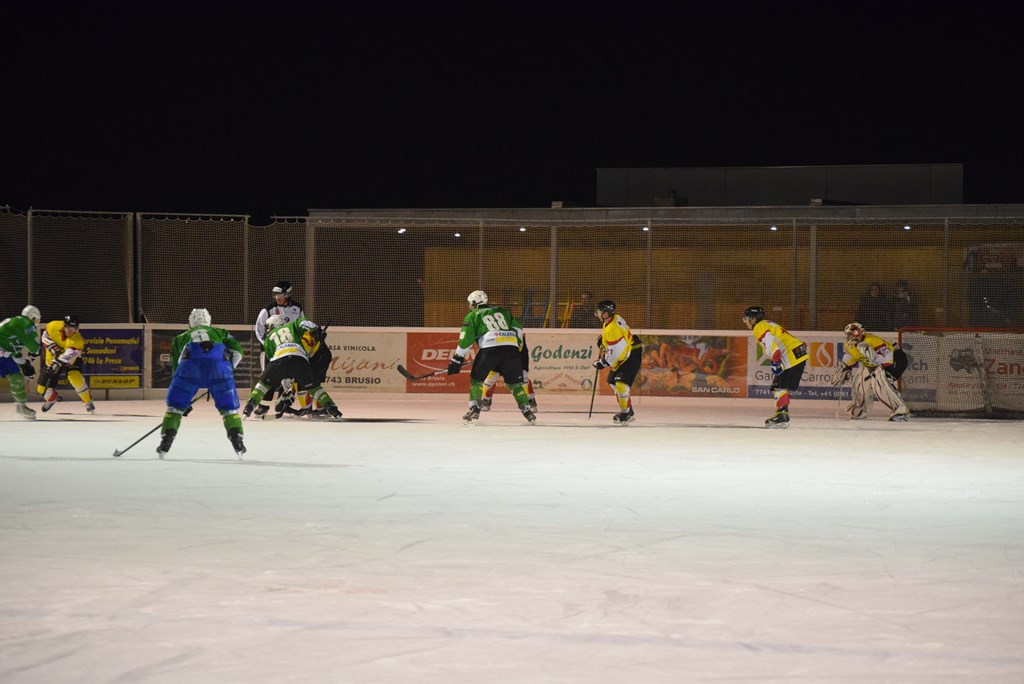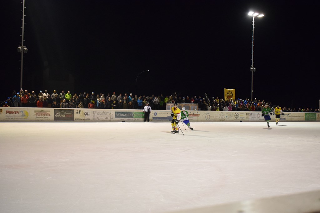 Un pubblico della grandi occasioni, 300 persone circa, e un tifo da stadio hanno fatto da cornice alla splendida e meritata vittoria dell'HC Poschiavo ieri sera in quel di Le Prese.
