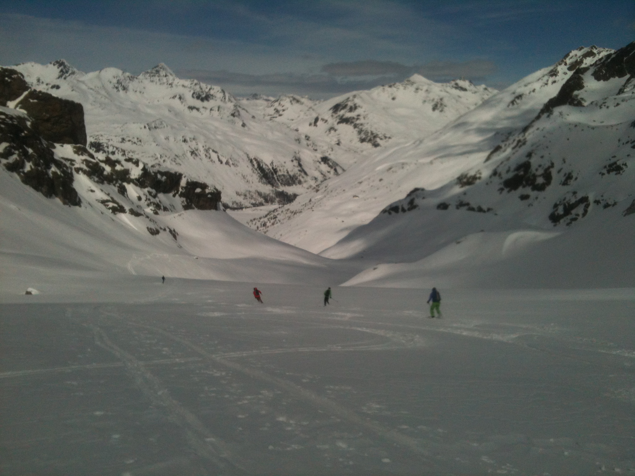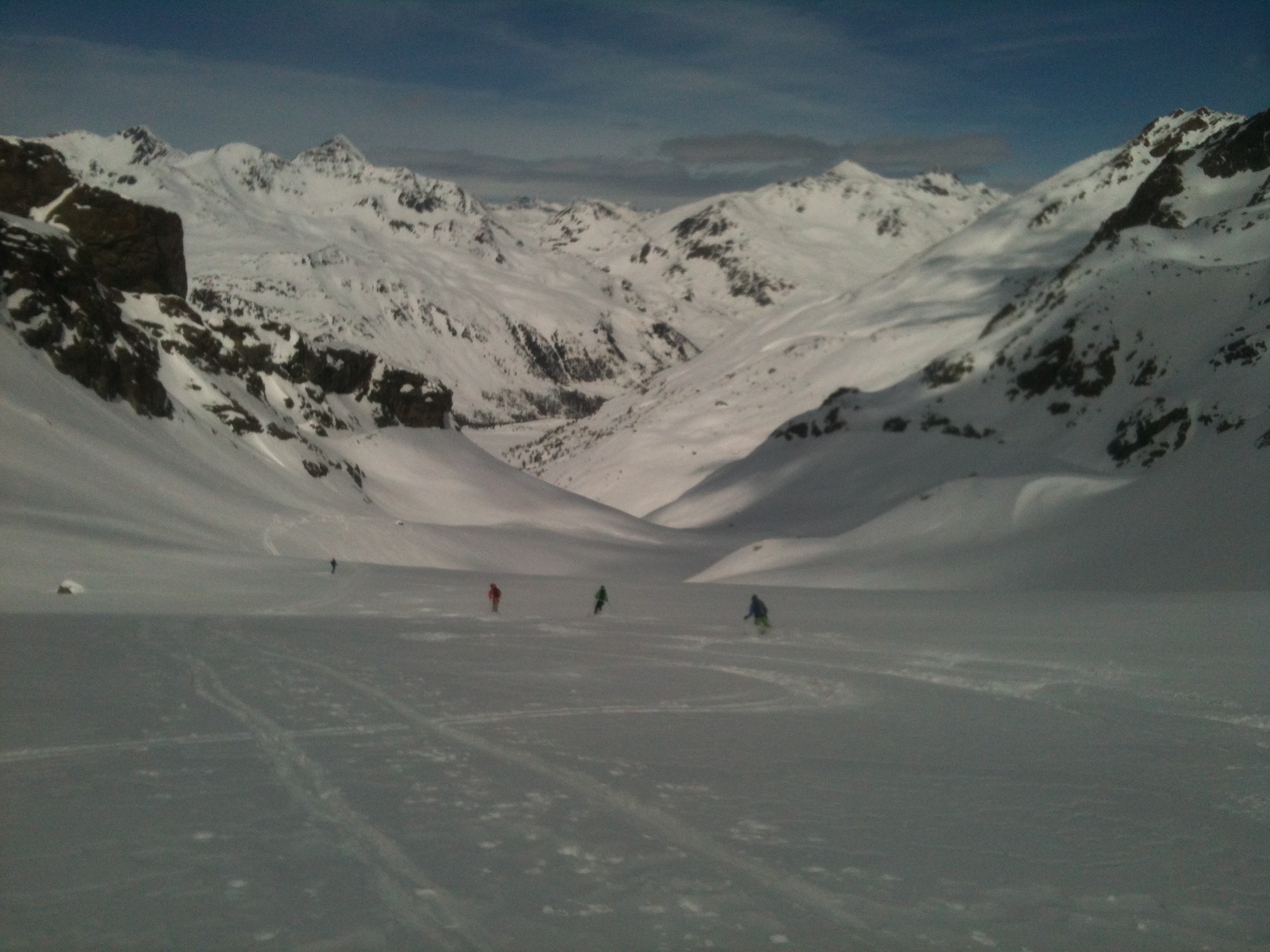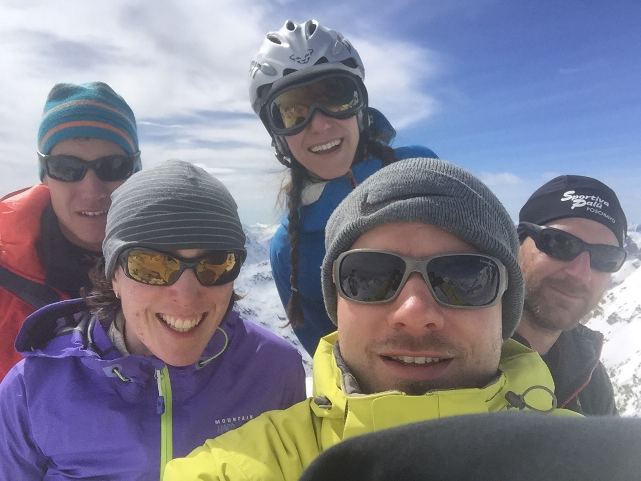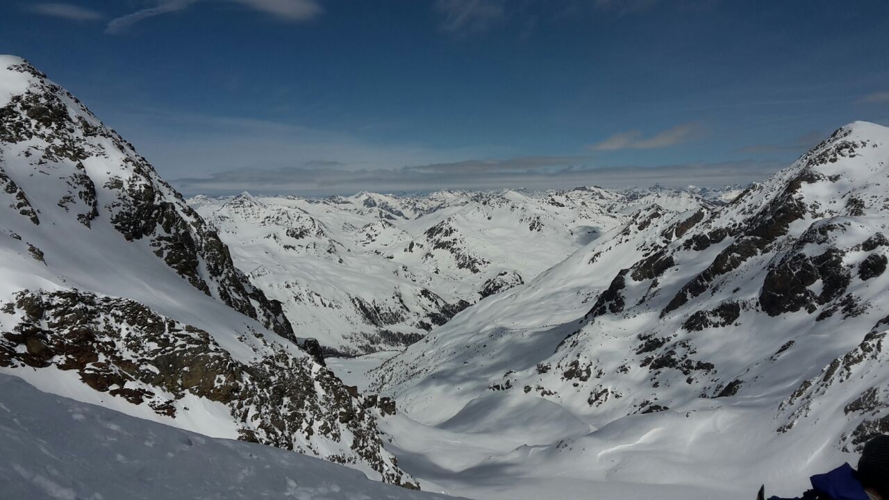 Al Rifugio Saoseo, passando qualche ora in compagnia, si sono incontrati gli 8 alpinisti motivati per la gita programmata. La giornata seguente premette un tempo mediocre e alle 6.30 si parte dalla capanna con l’intenzione di raggiungere l’obiettivo. Il cammino è lungo e impegnativo, ma appagante per la vista delle magnifiche montagne che circondano la Val da Camp. A mezzogiorno gli alpinisti, guidati da Matteo Liver, raggiungono il colle che precede la cima. La maggior parte del gruppo, già soddisfatta del traguardo raggiunto, si accontenta dell’anticima, mentre Marco Heis e Getullio Crameri raggiungono con entusiasmo la Cima Lago Spalmo passando un canale innevato molto impegnativo. Complimenti!