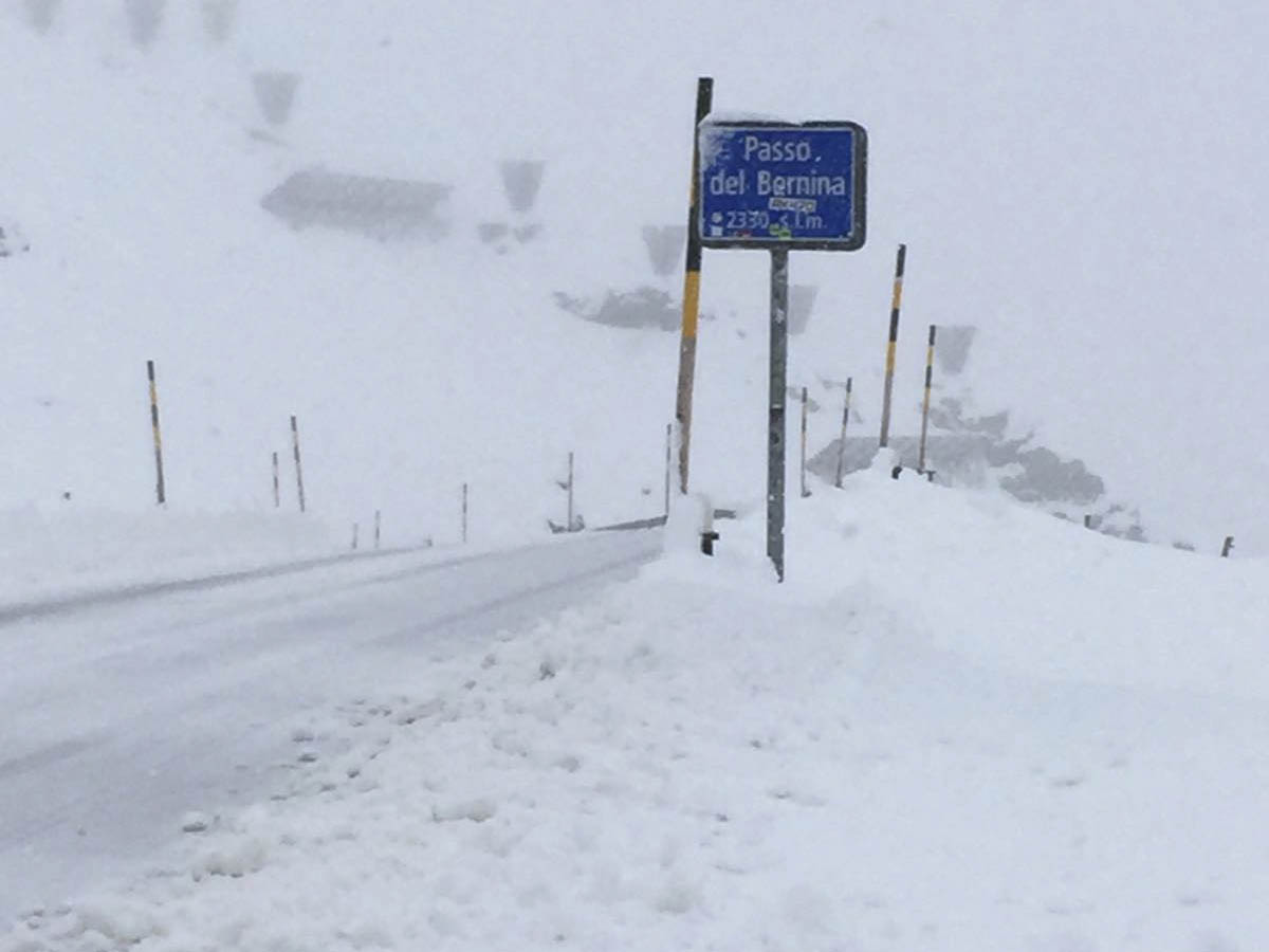 Passo Bernina: strada coperta di neve