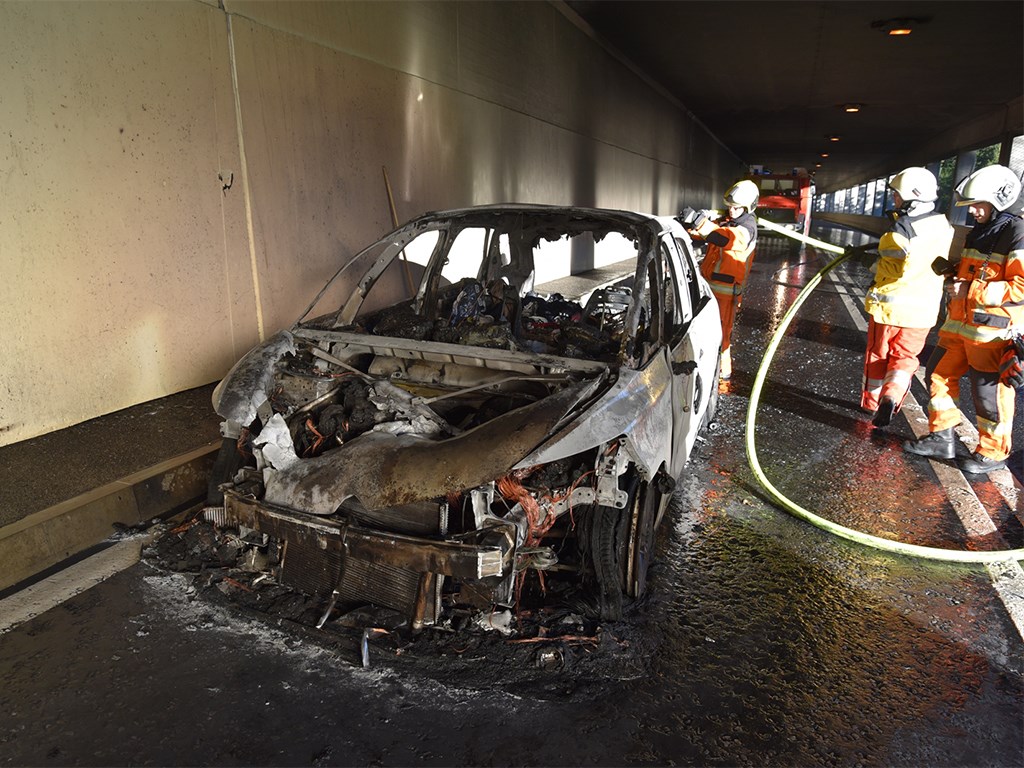 Auto in fiamme in galleria